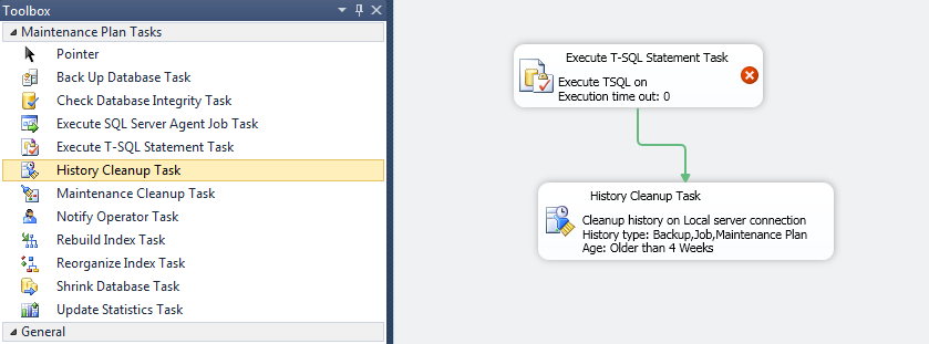 - Drag and Drop 2 Maintenance Tasks to the surface as shown. Connect them as shown.