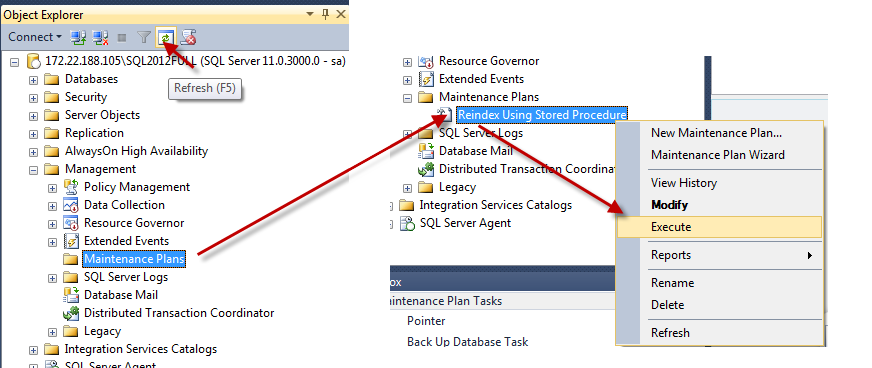 - Run the script 50ReindexAsNecessaryWoutputMsg_v2.0 one time in SQL Server Management Studio. This will create the needed views and stored procedures, and it will perform the one time execution.